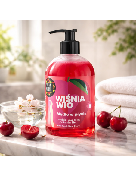Värskendav vedel kätepesuvahend vitamiinikompleksi ja küpsete kirsside lõhnaga. Puhastab käed õrnalt, kuivatamata nahka, ning jätab meeldiva puuviljase aroomi.