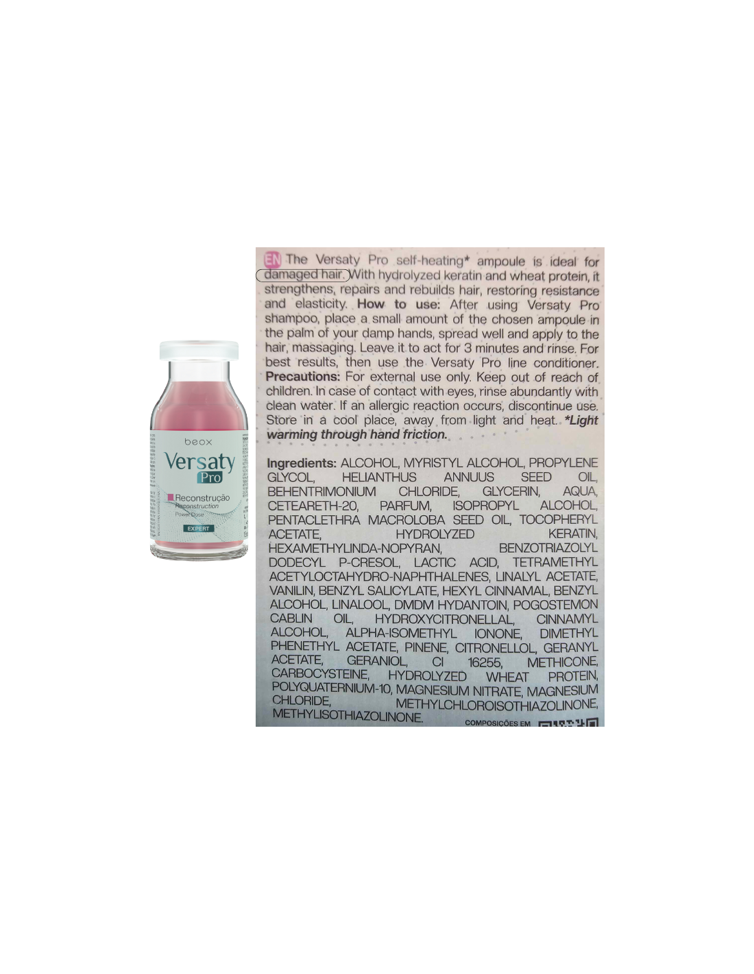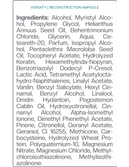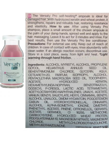2. SAMM – Pange mõni tilk valitud VERSATY ampulli monodoosi sisu oma peopesadele, hõõruge need kokku (soojendage), et peopesadele tekiks juuksemaski konsistentsiga paks soe mass, ja jaotage see sama ühtlaselt. võimalikult juustele kogu pikkuses. Hoidke 3-5 minutit, loputage veega;