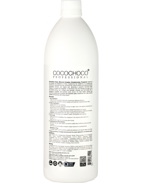 Professionaalidele loodud oonüks muudab kahjustatud, kahused või sõnakuulmatud juuksed, andes neile sileda, kauakestva läike ja elujõu. Taastavate koostisosadega rikastatud see parandab juukseid juurtest otsteni, muutes need pärast iga kasutuskorda tervemaks, tugevamaks ja läikivamaks. Saavuta salongikvaliteediga sirgendamine ja taasta oma juuste loomulik ilu. Pikaajalise tulemuse saavutamiseks kasuta CocoChoco sulfaadivaba, pH-tasakaalustatud aluselist šampooni ja palsamit. Onyxiga naudid ideaalset kombinatsiooni tugevusest, kohevusest ja ajatust elegantsist.