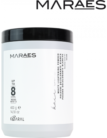 MARAES Valge pulber juuste heledamaks muutmiseks, veganvalem, heledab 8 tooni, 1:2, karbis dosaatoriga, 400 g