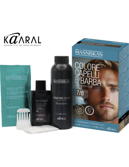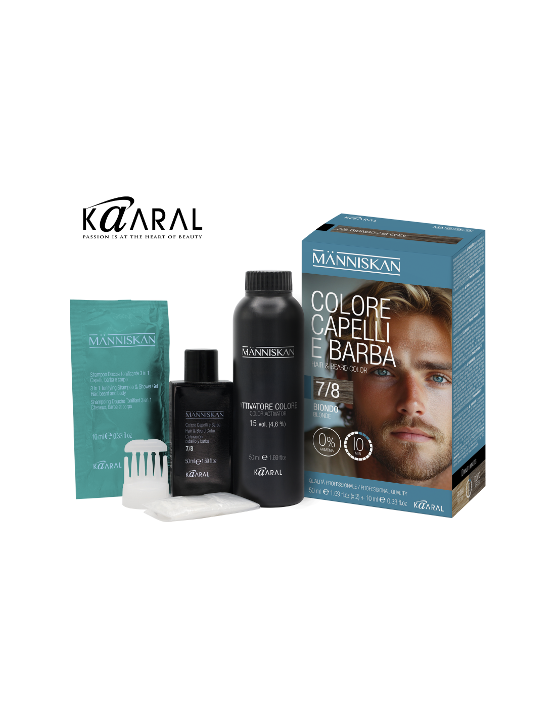 Professionaalne ammoniaagivaba tooniv juuksevärv meestele juustele ja habemele/vuntsidele, koduseks kasutamiseks mõeldud komplekt Människan (KAARAL, Itaalia)