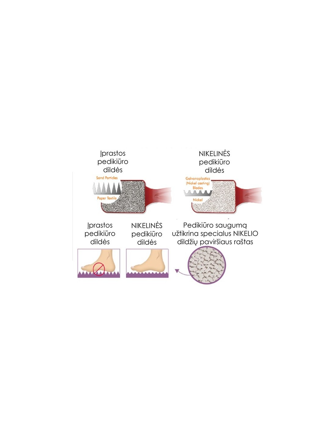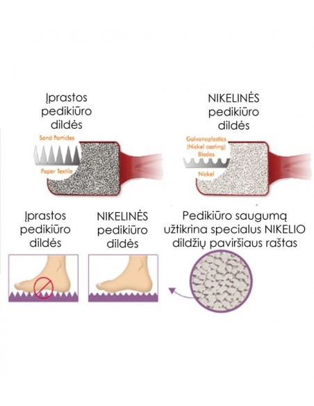 Kaip šalinti nuospaudas? Rekomenduojame naudoti profesionalios pedikiūro dildes pėdoms iš nikelio, kurias naudoja pedikiūro meistrai salonuose. Puikios kokybės dildės pėdoms pašalina kalusą