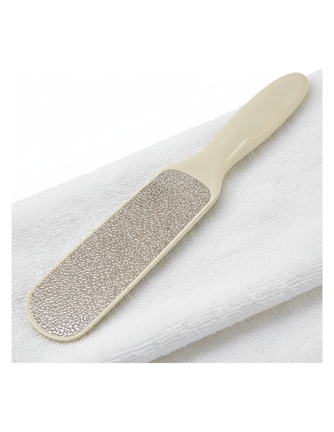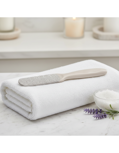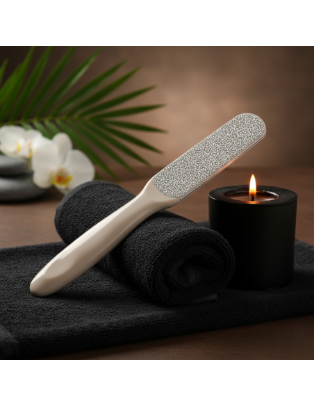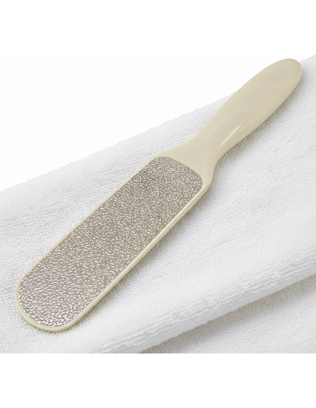 Kahepoolne raspel paksendite eemaldamiseks. Tugevam osa - väga katkiste kandade hooldamiseks - pehmem osa - et saavutada õrn ja ilusa nahk igal ajal. Pikaajaline. Desinfitseeritav.