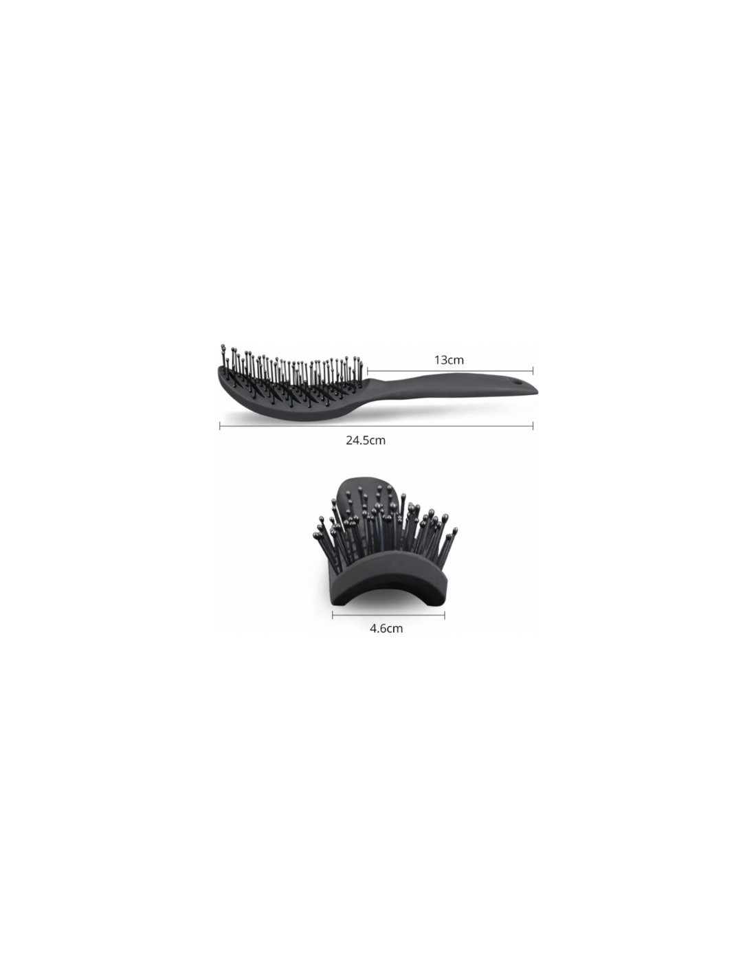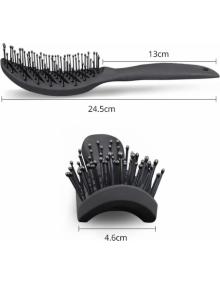 Tugevad ja paindlikud harjased kammivad õrnalt juukseid. Kammi kumer kuju kohaneb ideaalselt pea kujuga.