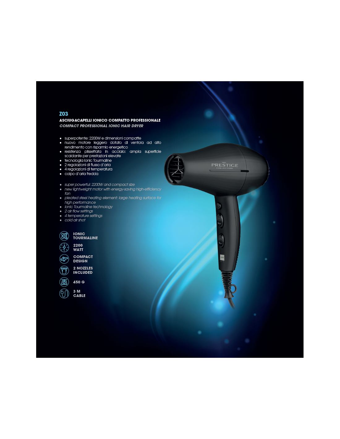 PRESTIGE Z03 Professionaalne ülivõimas ja kompaktne föön (LABOR, Itaalia)