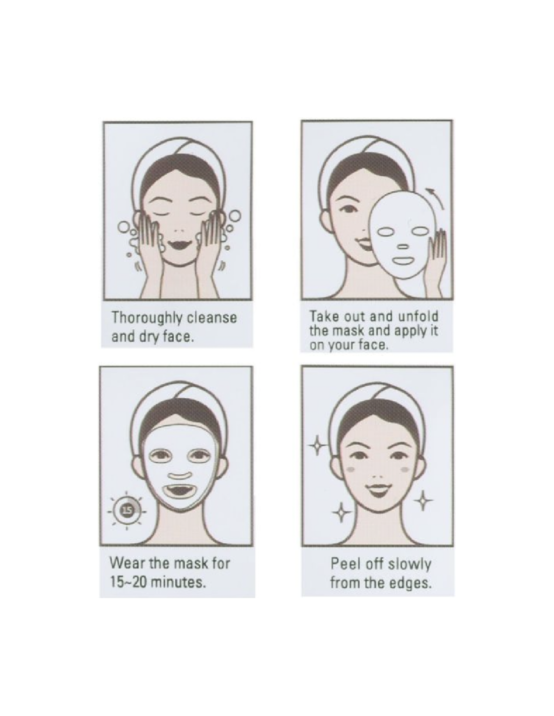 Во-первых, тщательно и правильно очистите кожу. Затем откройте упаковку и, вынев влажную тканевую маску, аккуратно положите ее на лицо, разгладьте и оставьте действовать.