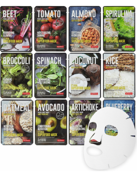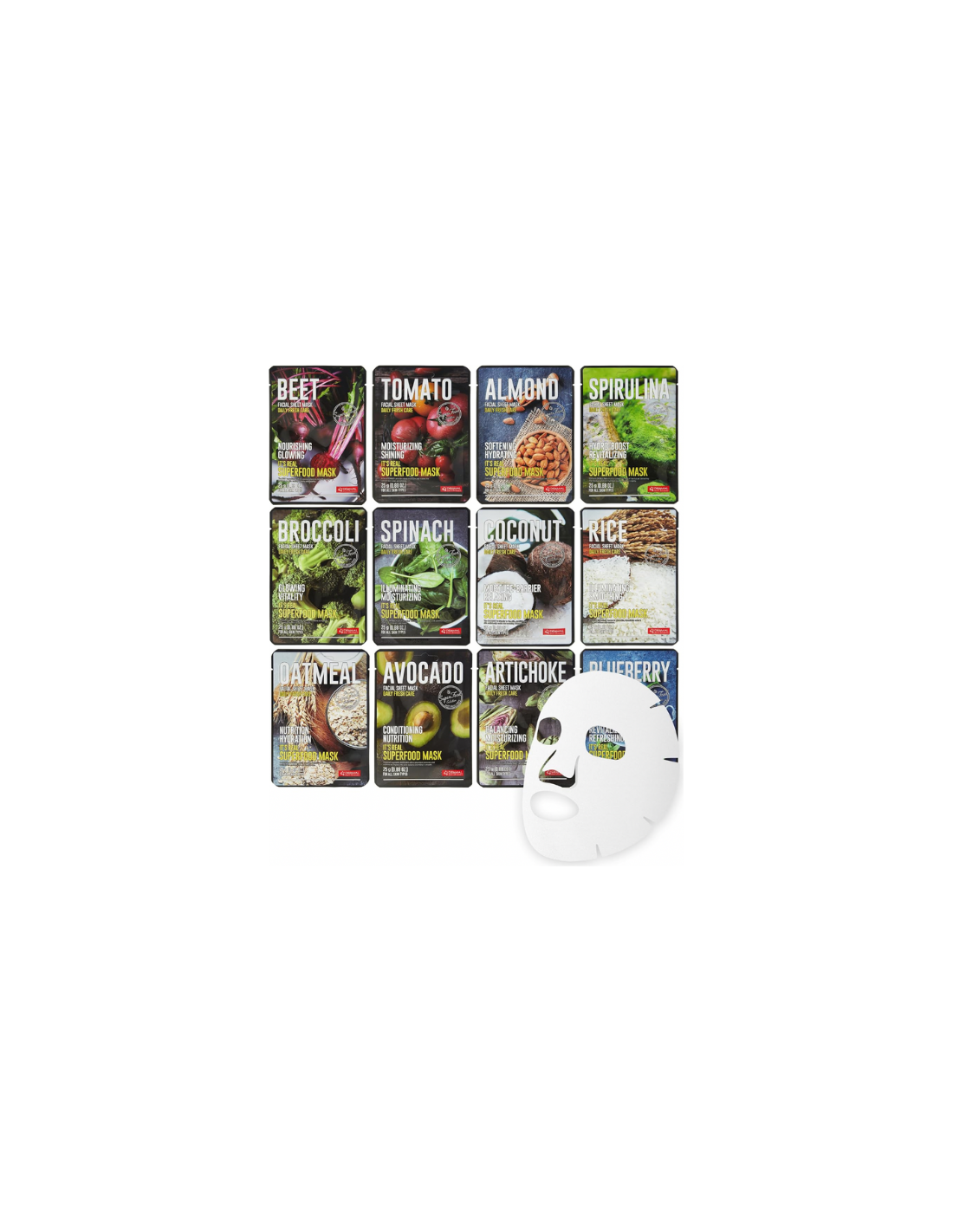 Выбирайте и пробуйте различные маски для лица SUPERFOOD со следующими экстрактами и эффектами: