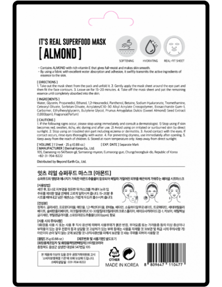 ALMOND Тканевая маска для лица IT's REAL SUPERFOOD (25 г, одноразовая)
