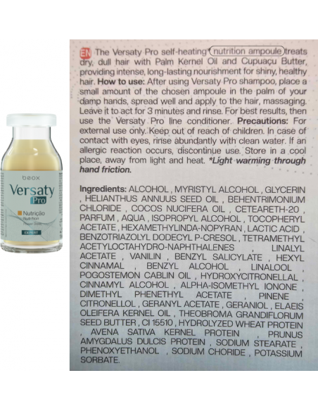 ШАГ 2 - Нанесите несколько капель содержимого выбранной монодозы ампулы VERSATY на ладони, разотрите (согрейте) так, чтобы на ладонях образовалась густая теплая масса консистенции маски для волос, и равномерно распределите ее. как можно на волосах по всей длине. Подержать 3-5 минут, смыть водой;