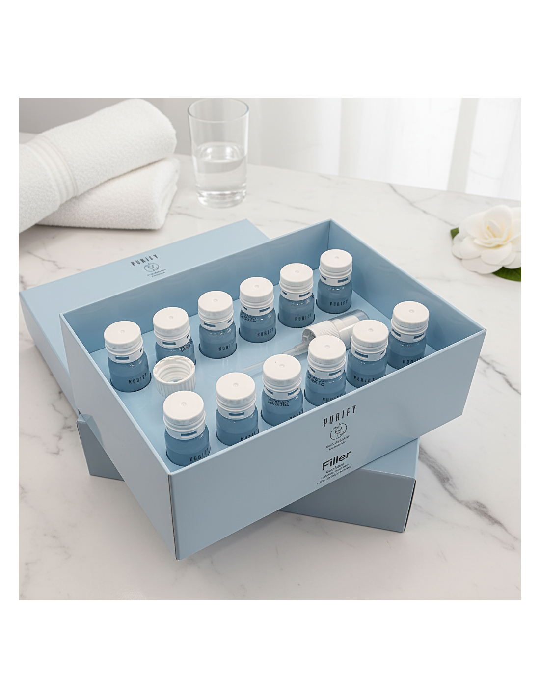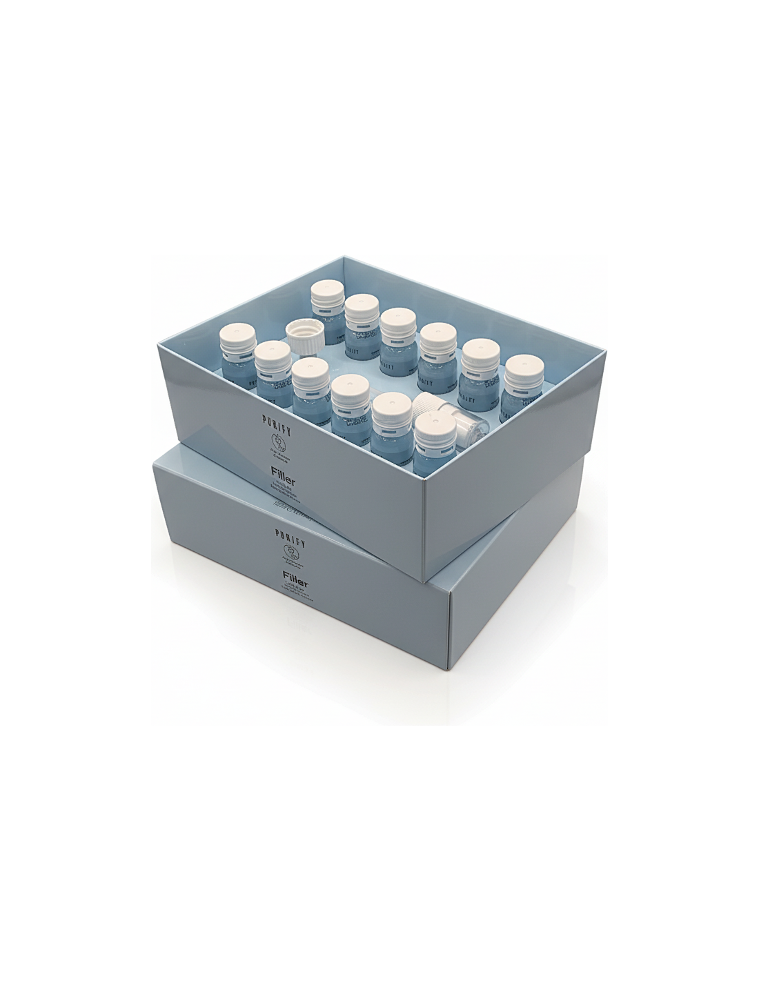 PURIFY FILLER — это комплексная линия профессиональных средств по уходу за волосами и процедура для ломких, изношенных волос, склонных к ломкости и ломкости (например, под воздействием процедур обесцвечивания, осветления, окрашивания и агрессивных продуктов), придающая волосам необходимую силу, гибкость , плотность и объем, борьба с признаками старения («антивозрастной» эффект), наполнение глубокой структуры волос эксклюзивным комплексом гиалуроновой кислоты и кератина, действующим по принципу беспрецедентной синергии.