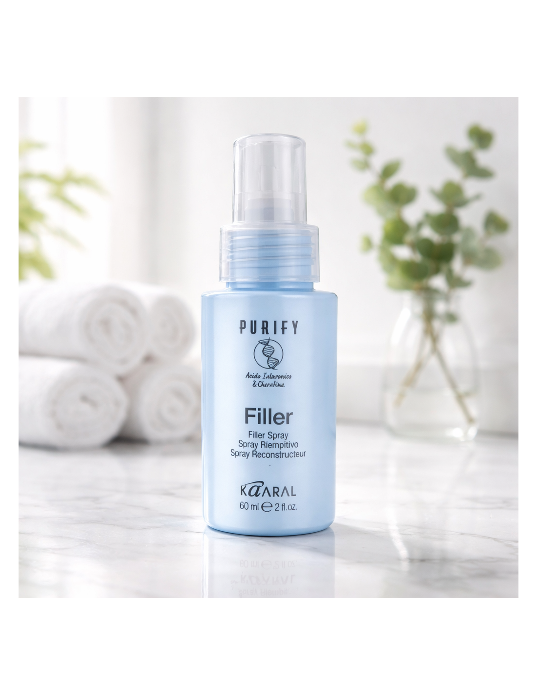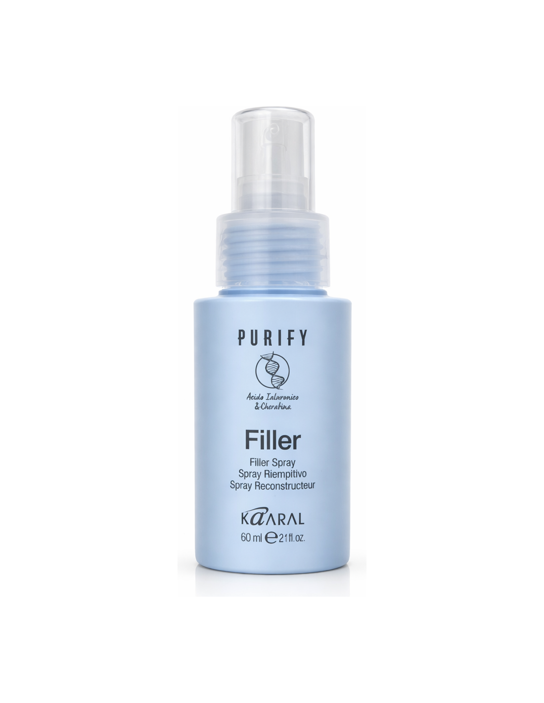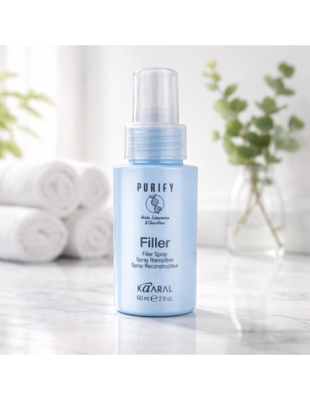 PURIFY FILLER — комплексная целенаправленная профессиональная салонная процедура для хрупких, изношенных волос, склонных к ломкости и ломкости (например, под воздействием обесцвечивания, осветления, окрашивания и агрессивных продуктов), придающая волосам необходимую силу, гибкость, густоту и объем, борьба с признаками старения («антивозрастной» эффект), наполнение глубокой структуры волос эксклюзивным комплексом гиалуроновой кислоты и кератина, действующим по принципу беспрецедентной синергии.