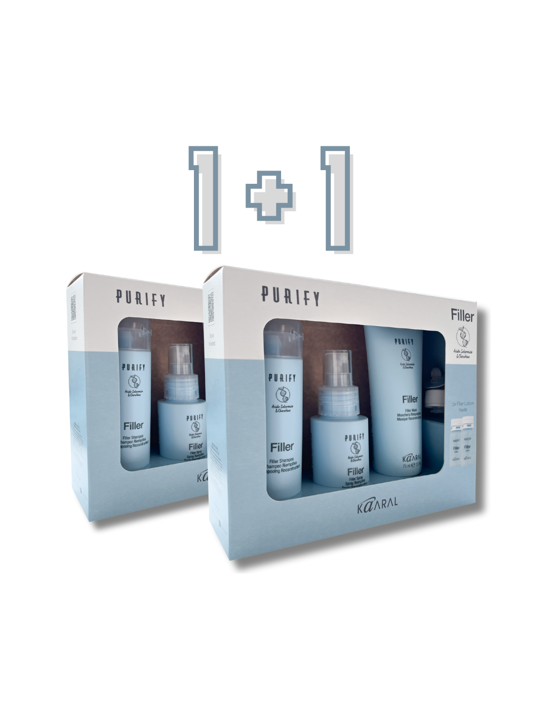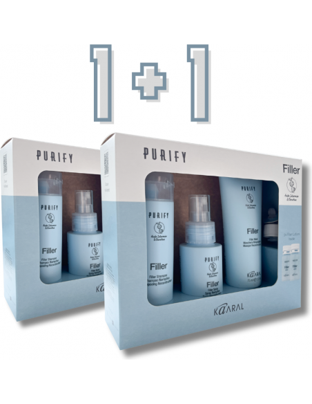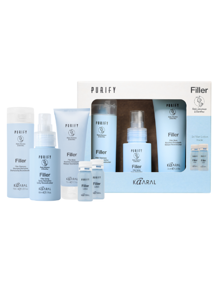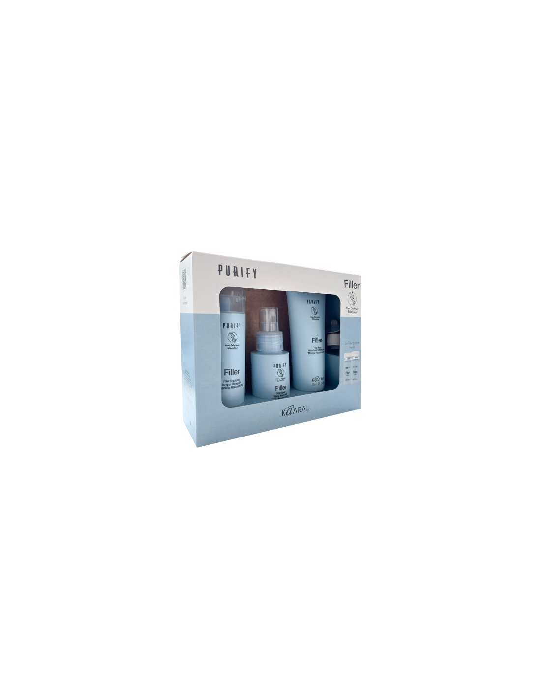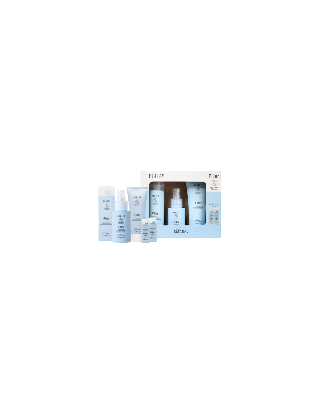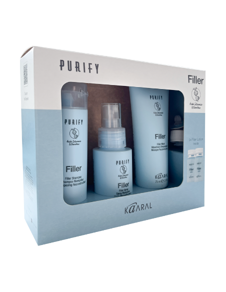 PURIFY FILLER — профессиональная линия космецевтических средств по уходу за волосами для хрупких, изношенных, склонных к ломкости волос (например, подвергшихся воздействию процедур обесцвечивания, осветления, окрашивания и агрессивных продуктов), придающих волосам необходимую силу, гибкость, плотность и объем. борьба с признаками старения («антивозрастной» эффект), наполнение глубокой структуры волос эксклюзивным комплексом гиалуроновой кислоты и кератина, действующим по принципу беспрецедентной синергии.