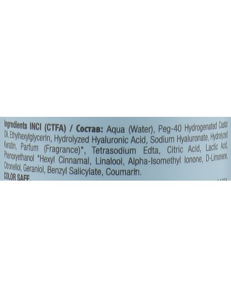 Распыляйте средство прядь за прядью, массируя на волосы, не избегая движений против роста волос. Особое внимание уделите концам. Продукт на основе гиалуроновой кислоты и кератина глубоко проникает в структуру волос, поэтому рекомендуется