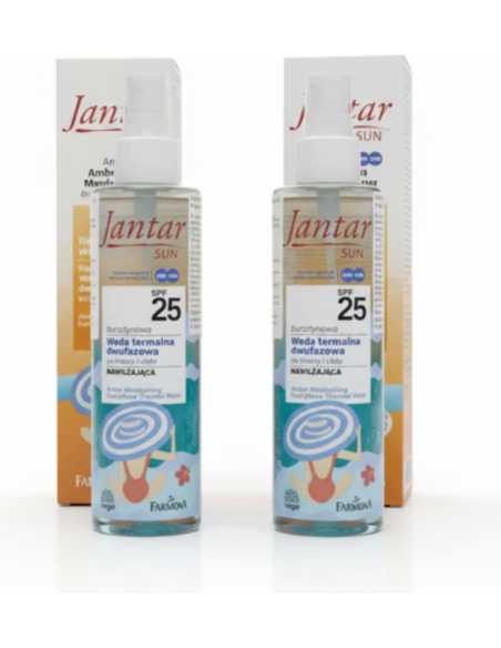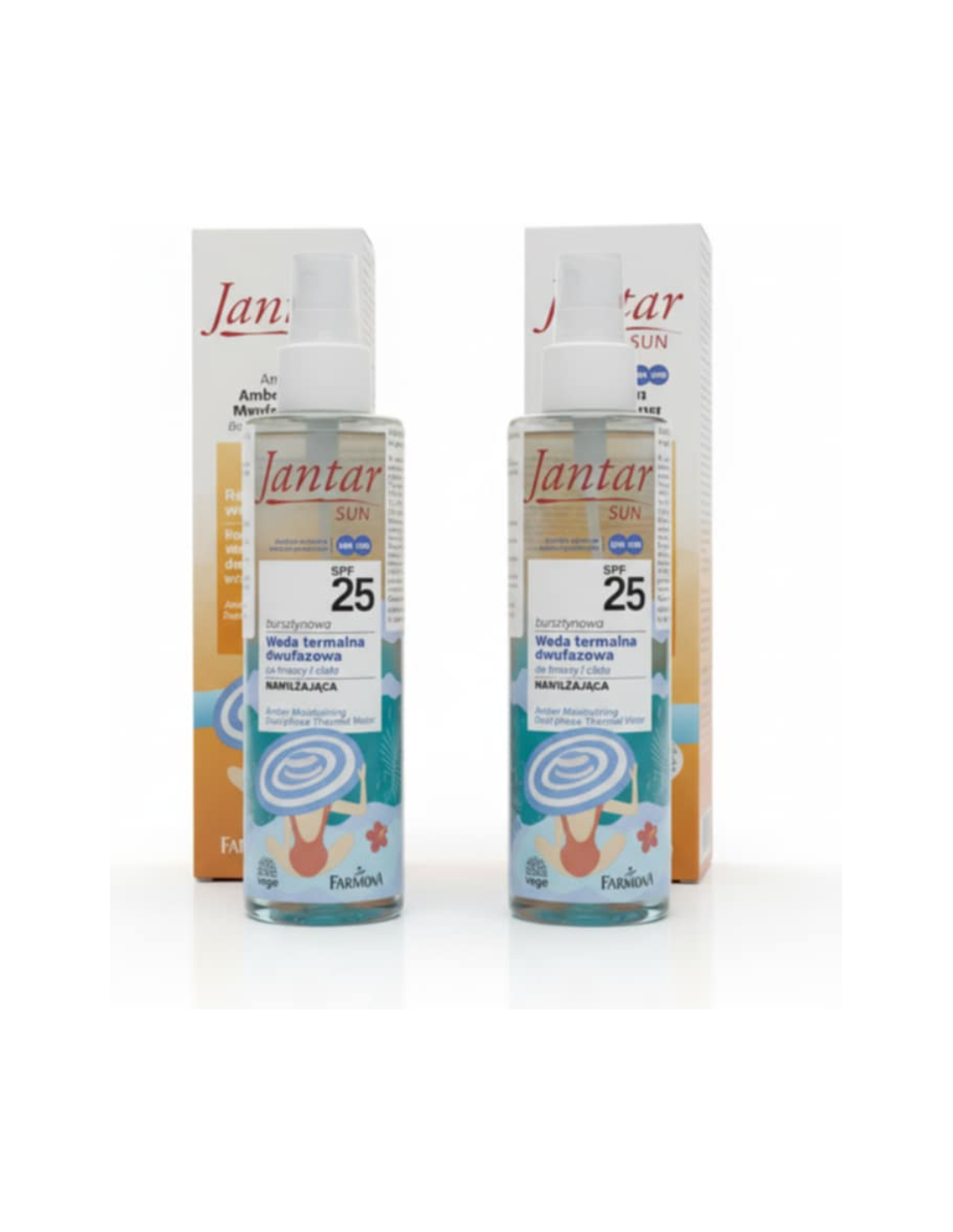 Испытайте превосходную защиту от солнца с двухфазной увлажняющей термальной водой Farmona Jantar Sun Amber с SPF 25.