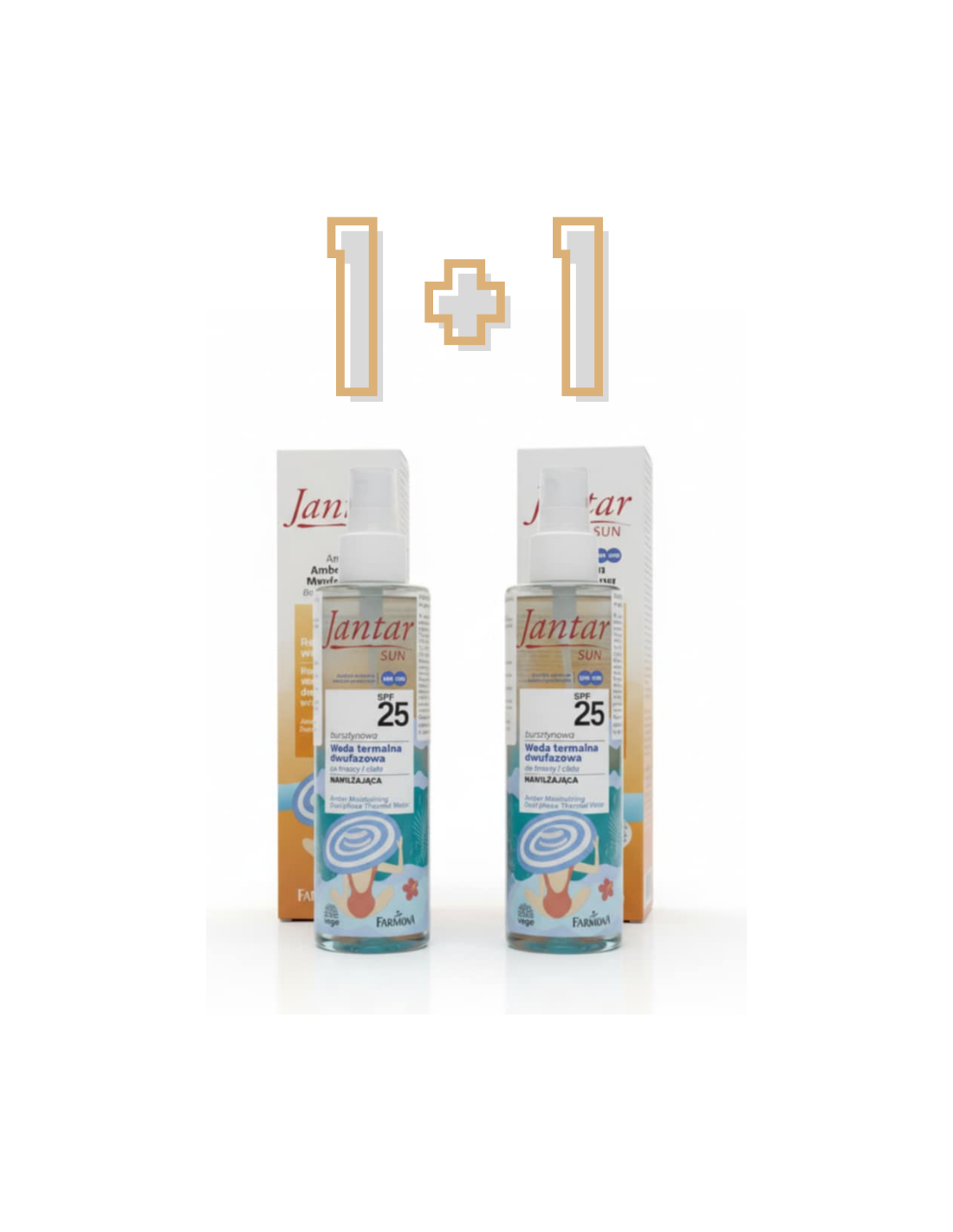 1 + 1 JANTAR SUN Янтарная увлажняющая двухфазная термальная вода SPF 25, 100% веган, 200 мл