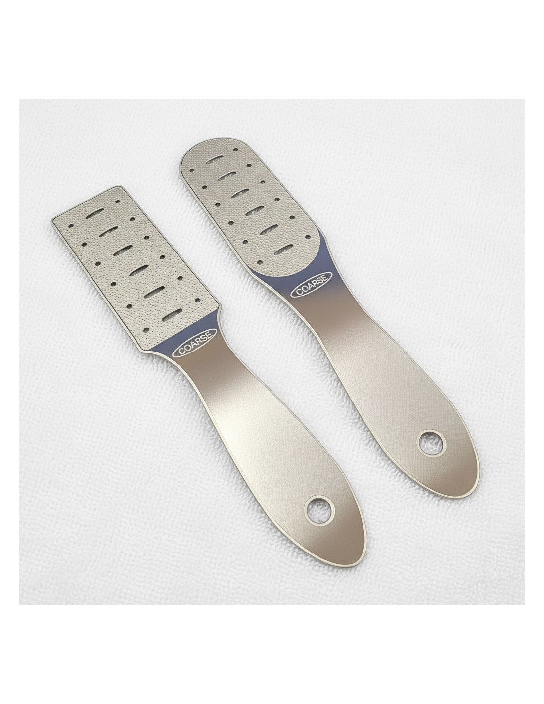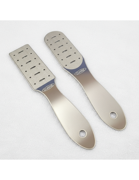 Dvipusė: vidutinio ir didelio rupumo (coarse and medium), unikali ir neturinti analogų darbinio paviršiaus faktūra, užtikrinanti itin efektyvų kaluso (suragėjusių, dažniausiai suskilinėjusų kulno nuospaudų) pašalinimą, itin paprastą ir greitą nuplovimą.